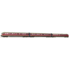 3-teiliger Dieseltriebzug VT 12.5 der Deutschen Bundesbahn (DB), Epoche III, im Betriebszustand nach der Auslieferung Anfang der 1950er Jahre. In klassischer roter Lackierung, mit roter Front und großem DB Flügelradlogo und 1./2./3. Klasse Beschriftung vor der Klassenreform der DB im Jahr 1956. Einsatz im Städteschnellverkehr.