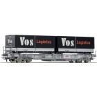 Einheitstaschenwagen Bauart Sdgkkms der Österreichischen Bundenbahn (ÖBB), Epoche V in aktuellem Betriebszustand. Beladen mit einem Lkw-Auflieger der Spedition "Augustin".