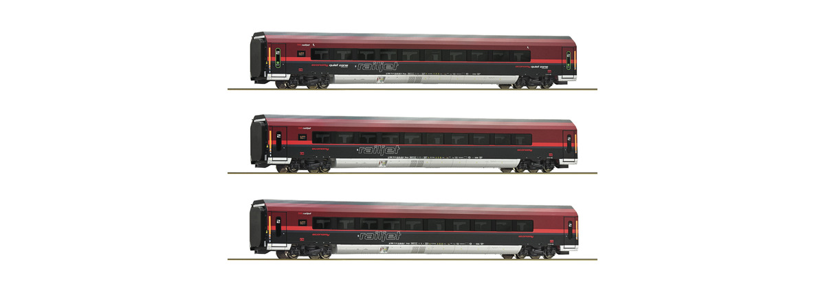 Dreiteiliges Railjet-Wagenset der Österreichischen Bundesbahnen.